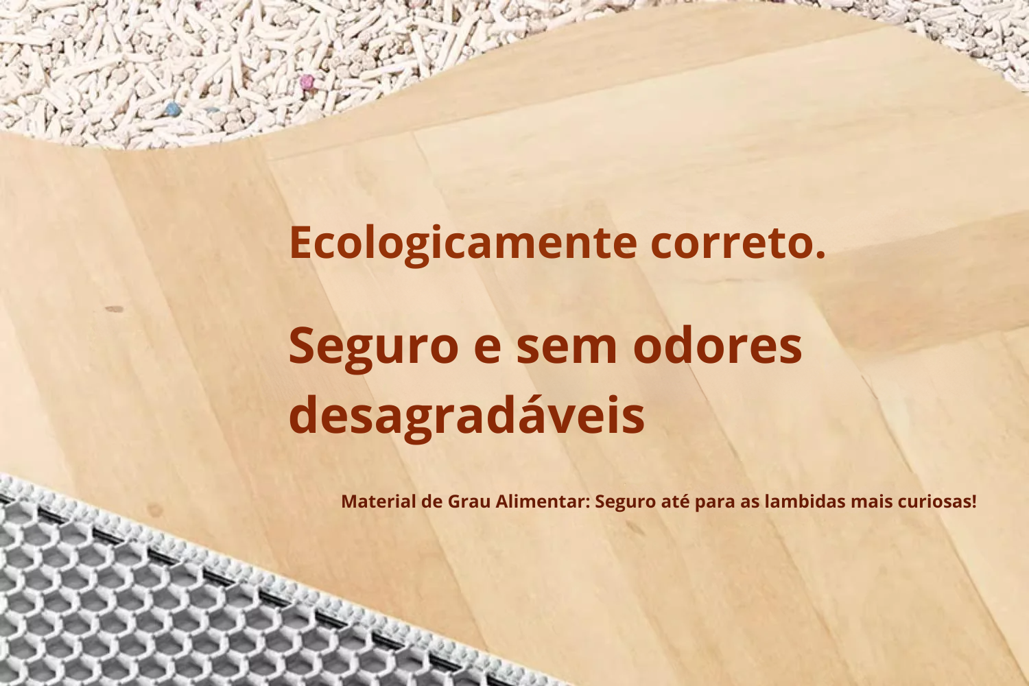 2. Ele serve para qualquer tipo de areia? Com certeza. O design de colmeia foi projetado para capturar desde grãos maiores (como sílica e granulados de madeira) até as areias mais finas e biodegradáveis. Os furos largos garantem que a sujeira caia para a segunda camada sem esforço.