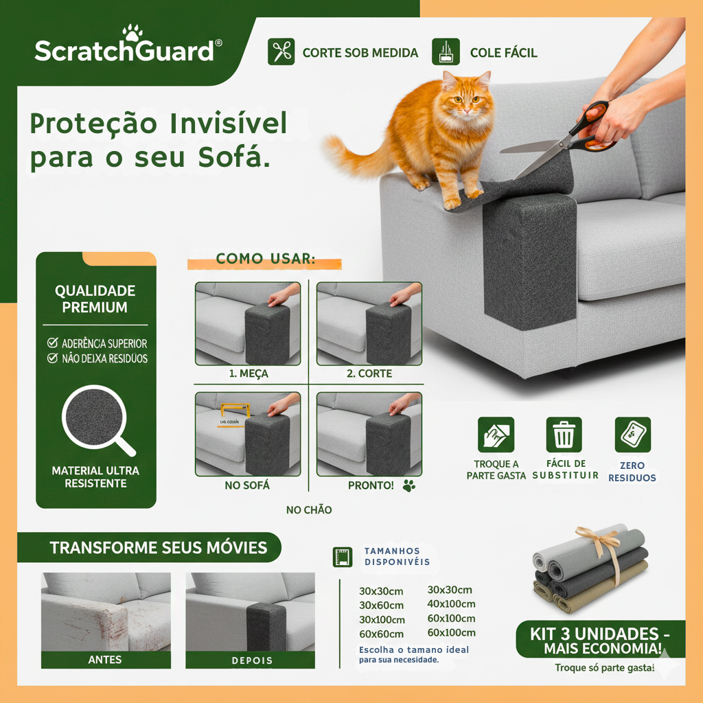 O ScratchGuard é a solução definitiva para quem busca harmonia entre a decoração da casa e o bem-estar felino. Mais do que um simples arranhador, é um sistema de proteção modular e customizável.
