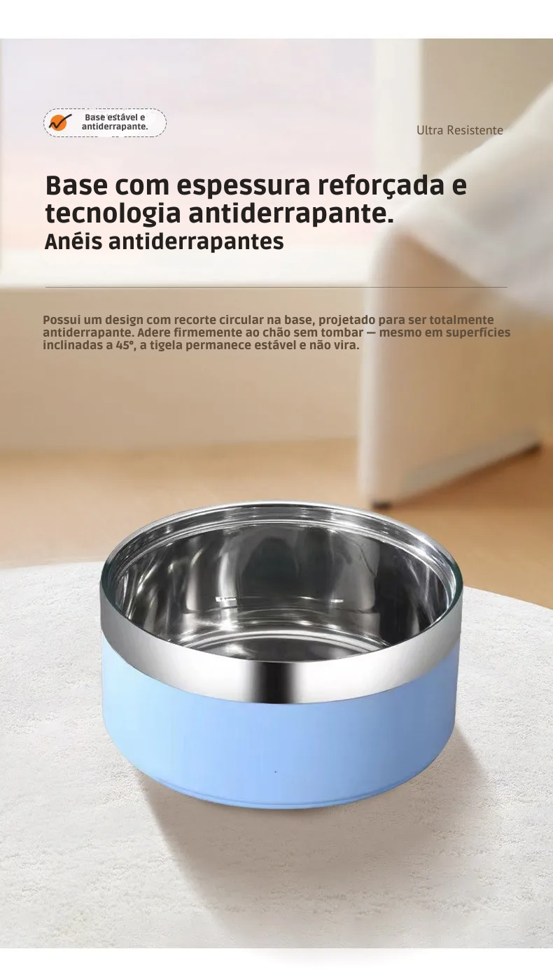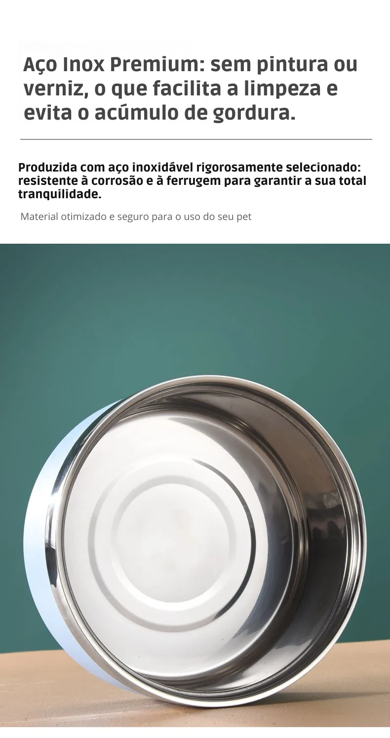 🛡️ Durabilidade Imbatível: Fabricada em aço inox engrossado, esta tigela é praticamente indestrutível. Resistente a quedas, mordidas e ao uso severo do dia a dia. Não enferruja e não perde o brilho.